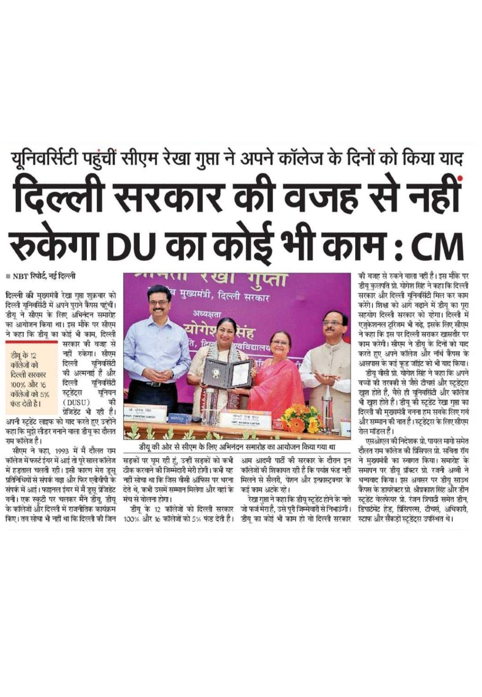 दिल्ली की माननीय मुख्यमंत्री श्रीमती रेखा गुप्ता जी का अभिनंदन समारोह